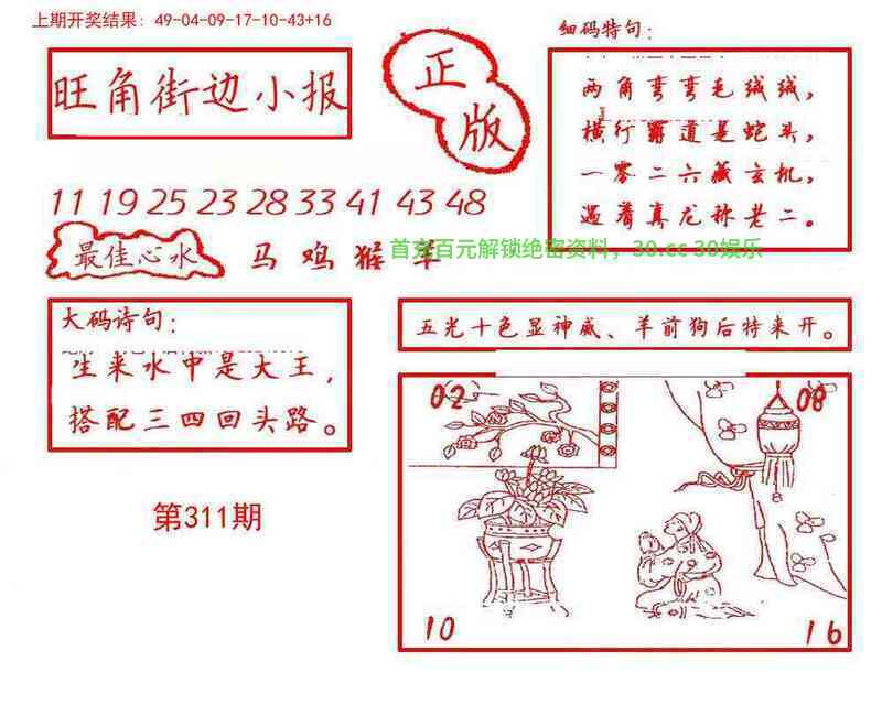 310期:【三行中特】金火】开:虎16中