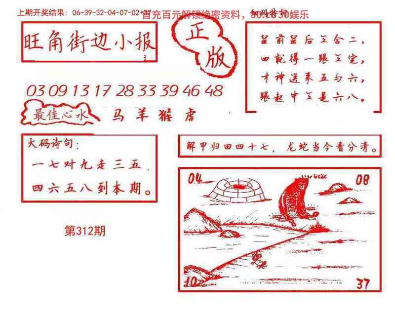 311期:1.2.3头+绿红波开:蛇37
